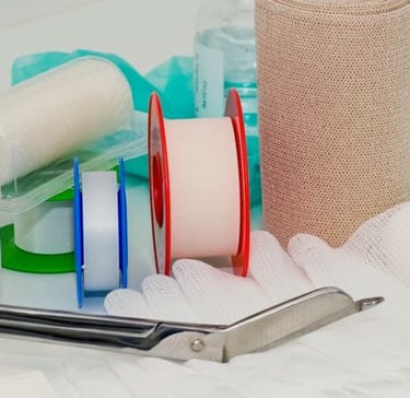 Suministro de insumos médicos para curaciones, terapias y cuidados en casa.